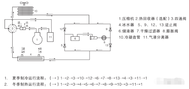 风冷模块式冷热水机组是以空气为冷(热)源,以水为供冷(热)介质的中央空调机组。作为冷热兼用型的一体化设备,风冷模块式冷热水机组省略了冷却塔、水泵、锅炉及相应管道系统等许多辅件,系统结构简单,安装空间小,维护管理方便且节约能源,适用广泛。因此,风冷模块式冷热水机组通常适用于既无供热锅炉,又无供热管网或其它稳定可靠热源,却又要求全年空调的暖通工程,是设计中优先选用的方案。