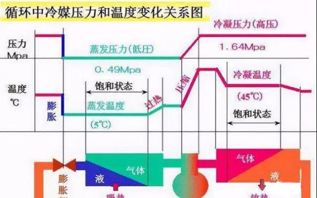 压缩机排气温度可以从排气管路上的温度计读出。它与制冷剂的绝热指数、压缩比及吸气温度有关。