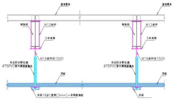 3、垂直吊杆采用热轧槽钢制作,也可以采用圆钢。