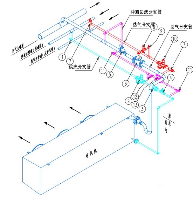 1、回气管坡向回气总管,坡度0.005。