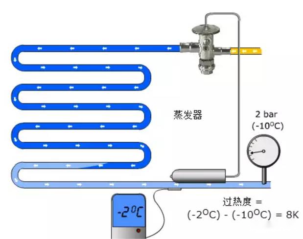 过热度定义:指低压侧和感温包内蒸汽之间的温度差。
