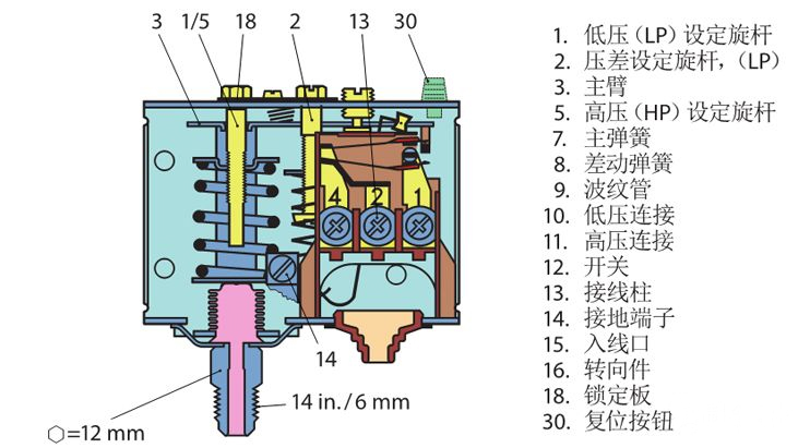 自动控制系统:当温度下降到设定值,温度控制器会关闭电磁阀停止供液,随着系统低压侧压力下降,压力控制器切断压缩机和冷风机电源,停止运行。自动开机机制:当库温回升到设定值以上,温度控制器激活电磁阀重新开始供液,待压力恢复到安全水平后,压缩机和冷风机再次启动。压力保护:压力控制器不仅参与上述过程,还可在系统压力异常升高时切断电源,保护压缩机和其他部件免受损坏。压差控制:压差控制器监测压缩机油泵的润滑状况,确保油压与吸入压力之间的差值不低于1.5kg/cm²,否则将在60秒内自动停机以保护压缩机。电子保护:对于半封闭式压缩机,内置的电子保护装置可以检测电机线圈温度,防止由于冷却不良引起的过热。水流监控:水流继电器保证水冷机组只有在冷却水正常流动的情况下才能运行,防止因缺水导致的设备故障。曲轴加热:曲轴箱内的加热元件可以在压缩机停机期间运作,蒸发掉混合液中的制冷剂,保持冷冻油纯净度,确保下次启动时的润滑效果。