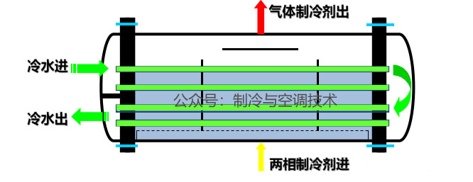 2.水冷冷凝器:利用水作为冷却介质来冷凝高温高压气态制冷剂的设备,它们通过将热量从制冷剂传递给冷却水,使制冷剂冷凝成液体状态,并将热量释放到环境中。