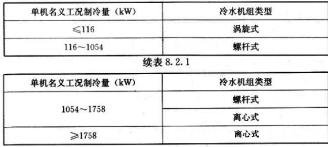 根据建筑空调面积和房间功能计算总冷负荷,考虑房间同时使用率(一般70~80%特殊情况另定),根据《民用建筑供暖通风与空气调节设计规范》(GB50736-2012)详细列出了不同负荷下冷水机组的类型选择建议,可直接作为选型参考。