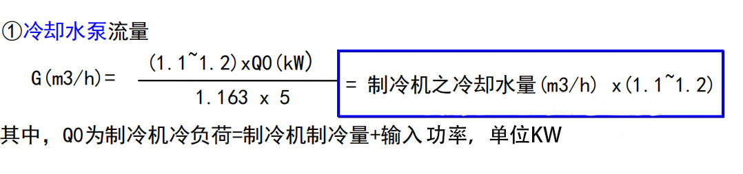 一般按照产品样本提供数值选取, 或按照如下公式进行计算, 公式中的Q为制冷主机制冷量。